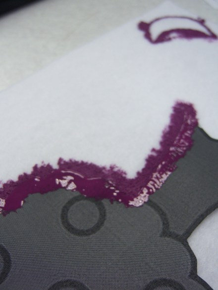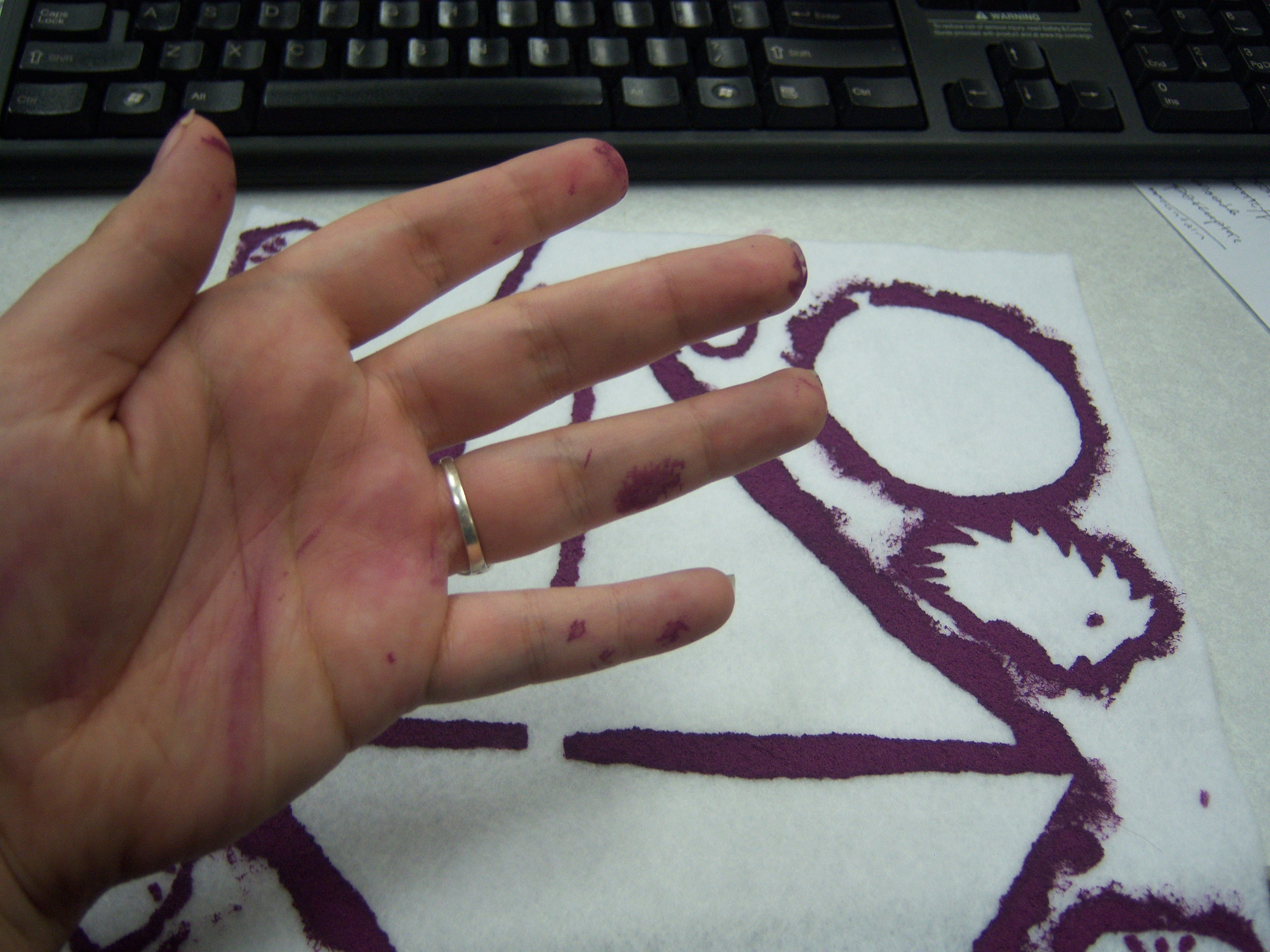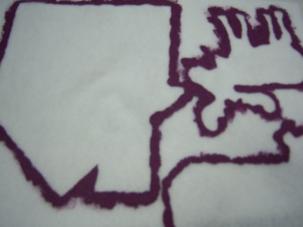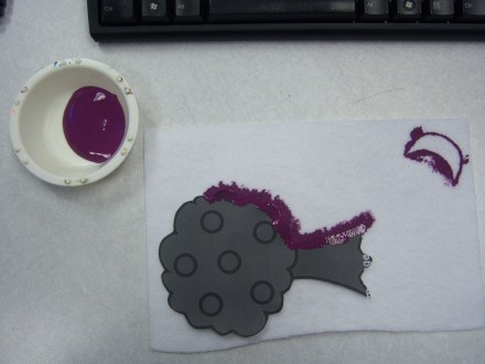 I started by taping down the clip art, painting around piece, waiting for the paint to dry, and cutting the piece out while making sure to leave a border of purple paint.