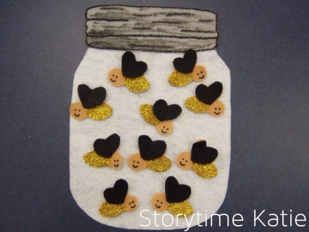 This was a great storytime! The variety in it really appealed to everyone and I was SO GLAD that I didn’t have a single storytime on each of the nocturnal animals. Their favorite book was “The Very Lonely Firefly,” and I recently purchased a library copy so that I knew the fireflies would light up at the end! All of the extension activities went over very well, but the best part was when I brought out our bat finger puppet. The kids were delighted and all of them politely came up and greeted batty before we sang our song!