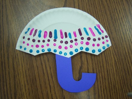The hit of storytime was “Up, Down, and All Around” — they loved this book! Everything else went pretty good, but I was met with a huge reaction of “EWW UNDERWEAR IS GROSS” when I read “Bear In Underwear.” I mean, the kids were in hysterics laughing, but I honestly wonder if they think underwear is gross. The umbrella craft was a huge success and the kids had a great day at storytime!
