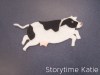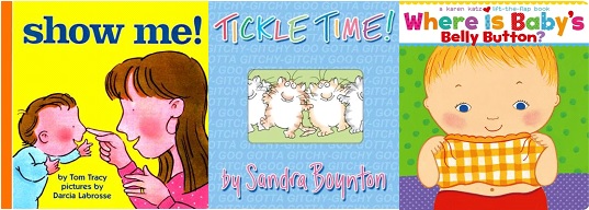 Everyone introduces themselves one at a time. Together, we hold up our hands and trace our fingers as the group says each child’s name five times. Parents can run their finger around each of their child’s finger or tap each finger or touch each finger — whatever the child is comfortable with. Before we say the child’s name for the fifth time, we say “OOPS!” and on the “OOPS!”, I flick my finger up before going back to trace the last finger. (At “OOPS”, some parents give their child a tickle.) So it sounds like this: parent/child says “Hi, my name is Barb and this is Katie” and the group says “Katie (thumb), Katie (pointer), Katie (middle), Katie (ring), OOPS!, Katie (pinky).”