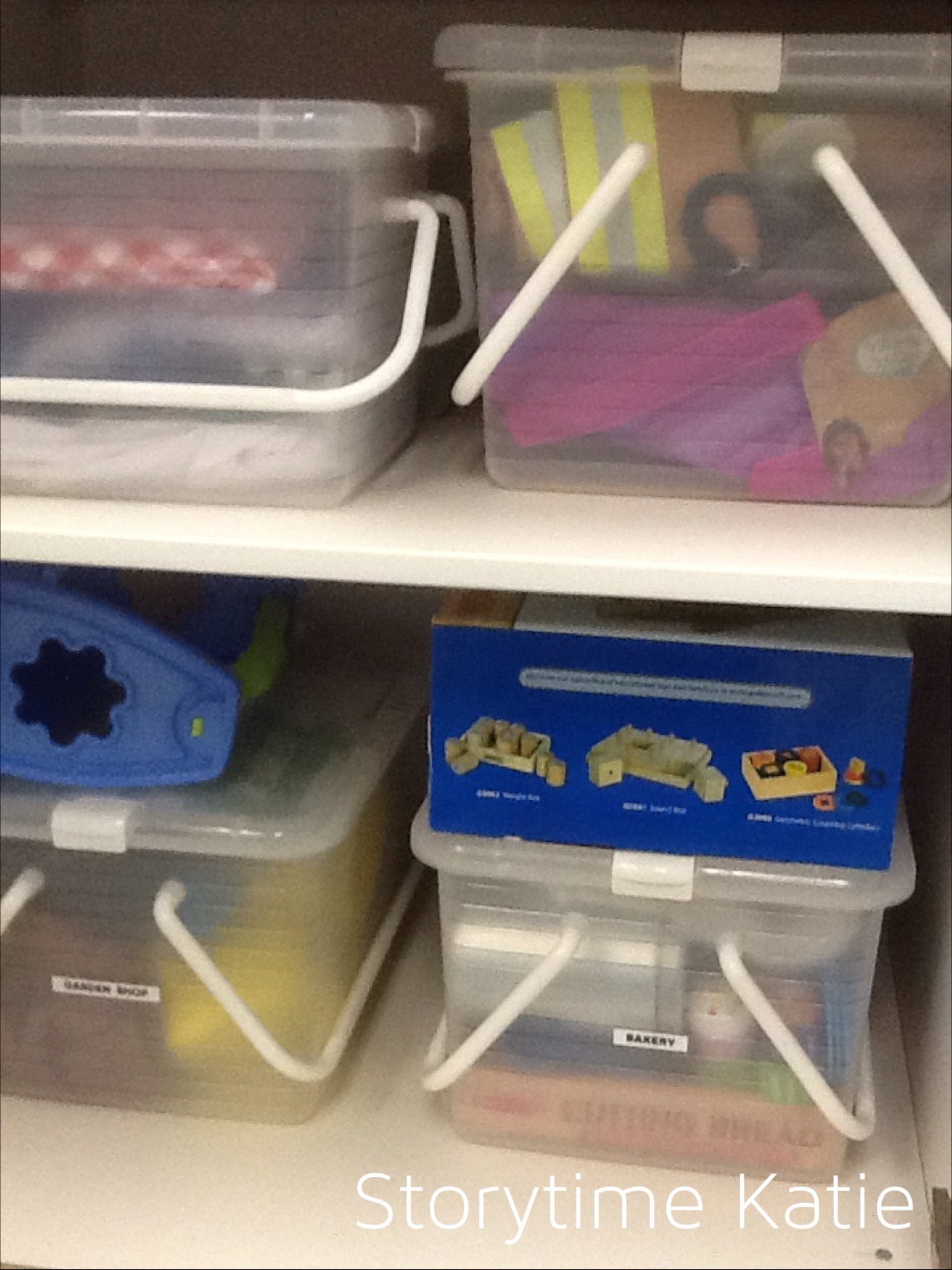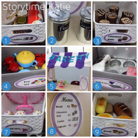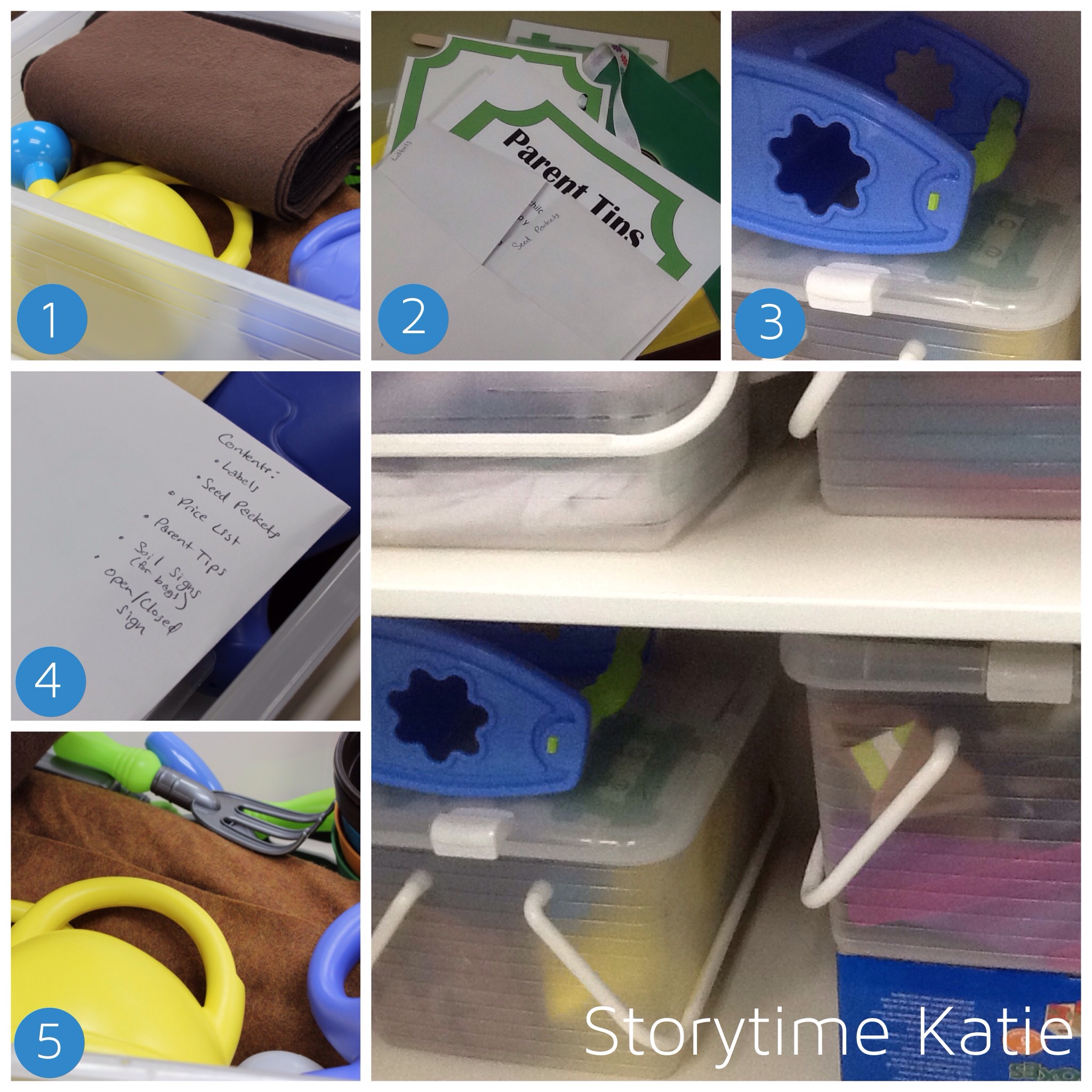 [A quick recap of the reusuable supplies: Constructive Playthings Create It Space, Target White Plastic Bins, & Target Grey Plastic Bins.]