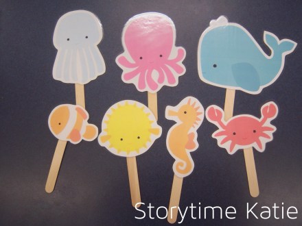 I bought my clip from Etsy and I didn’t stick to the lyrics that Jbrary had on their video. Pictured from left to right in my picture: (top) Jellyfish/twirling in the water, Octopus/squiggling in the water, Humongous whale/spouting in the water (bottom) Slippery fish/swimming through the water, Puffer fish/puffing in the water, Seahorse/flashing in the water, Little crab/pinching in the water