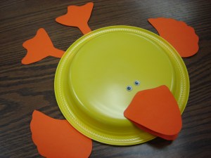 Teen volunteers cut out all the shapes; the wiggly eyes were self-stick, and the kids would have used glue dots to attach everything to the plate.