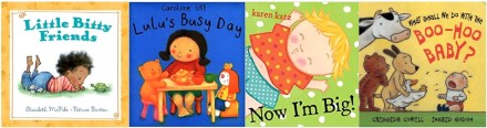 I read Lulu’s Busy Day and Now I’m Big! and both of them were great hits. I talked with the toddlers and caregivers about being big kids and the different things that we can do now that we’re big! (I did paperclip the diaper/potty spread in Now I’m Big! since the younger toddlers are often still in diapers and I didn’t want anyone to feel left out!) Since this was my last class with this group, I did THREE shaker songs, using Songs for Wiggleworms “The Milkshake Song” as my finale piece.